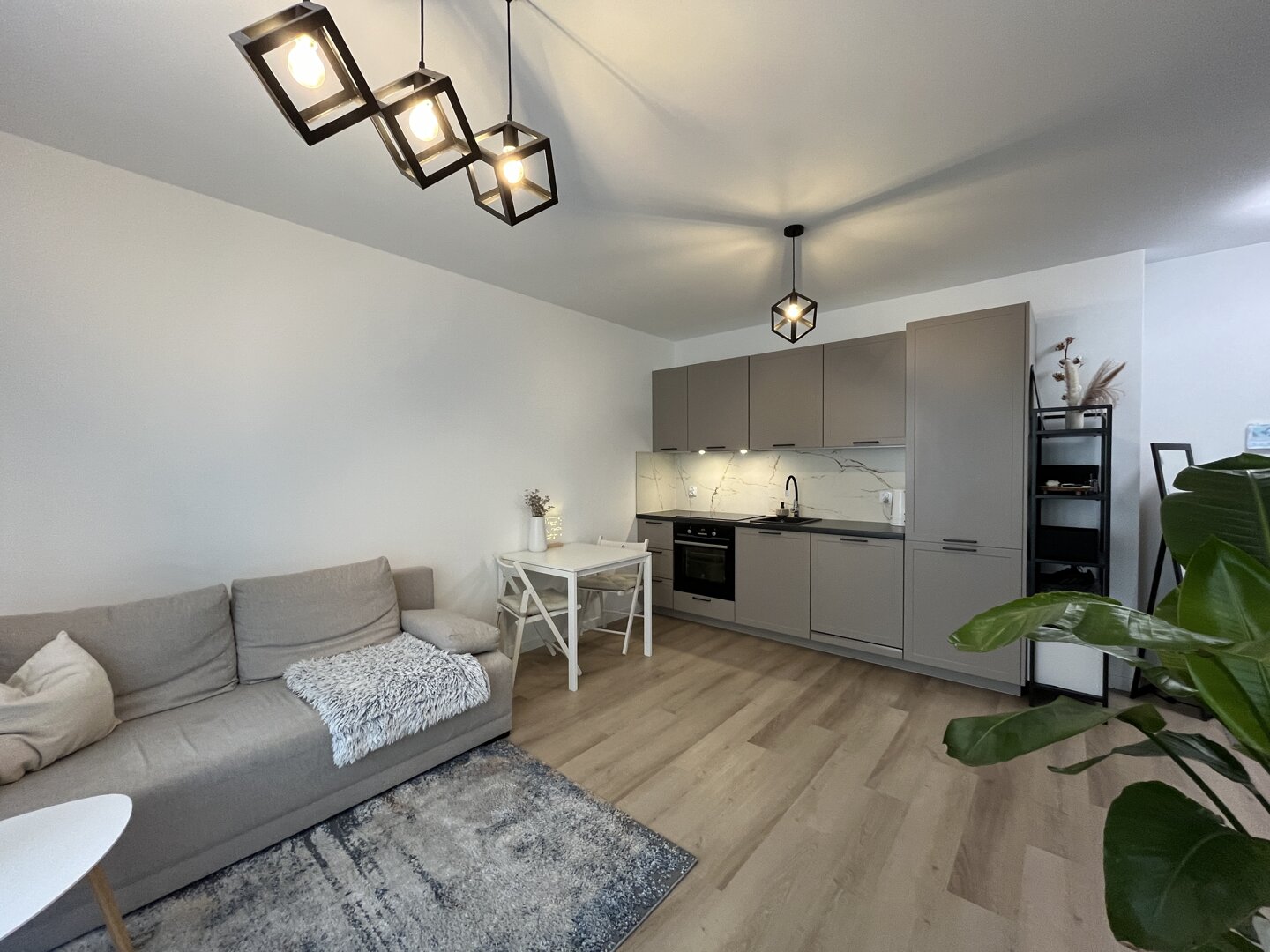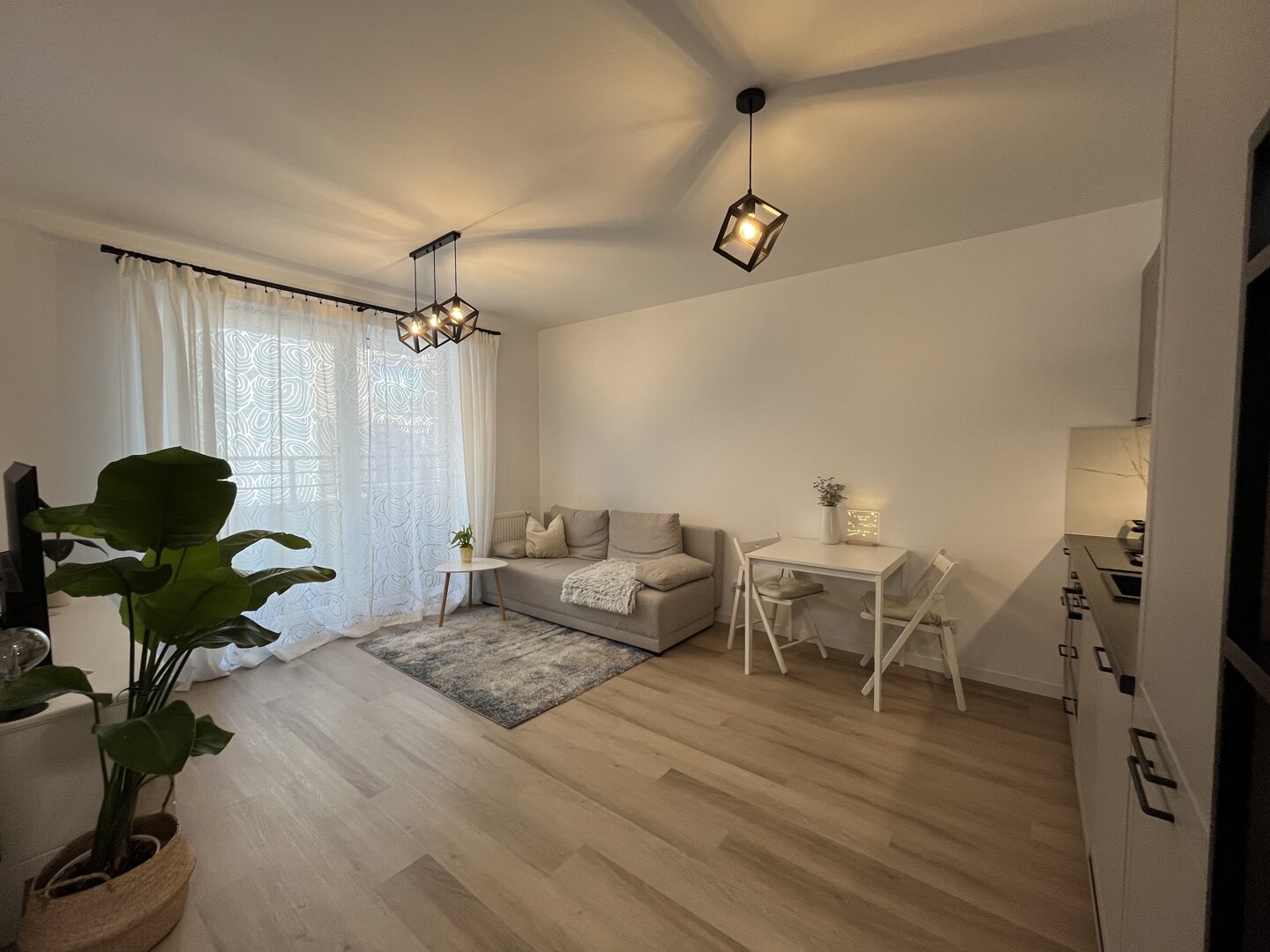 Nowa, stylowa kawalerka z balkonem i klimatyzacją. W apartamencie znajduje się wygodne łóżko oraz rozkładana sofa dla dodatkowych gości. Jasne, nowoczesne wnętrze zapewnia komfortowy pobyt zarówno na krótki, jak i dłuższy wyjazd.