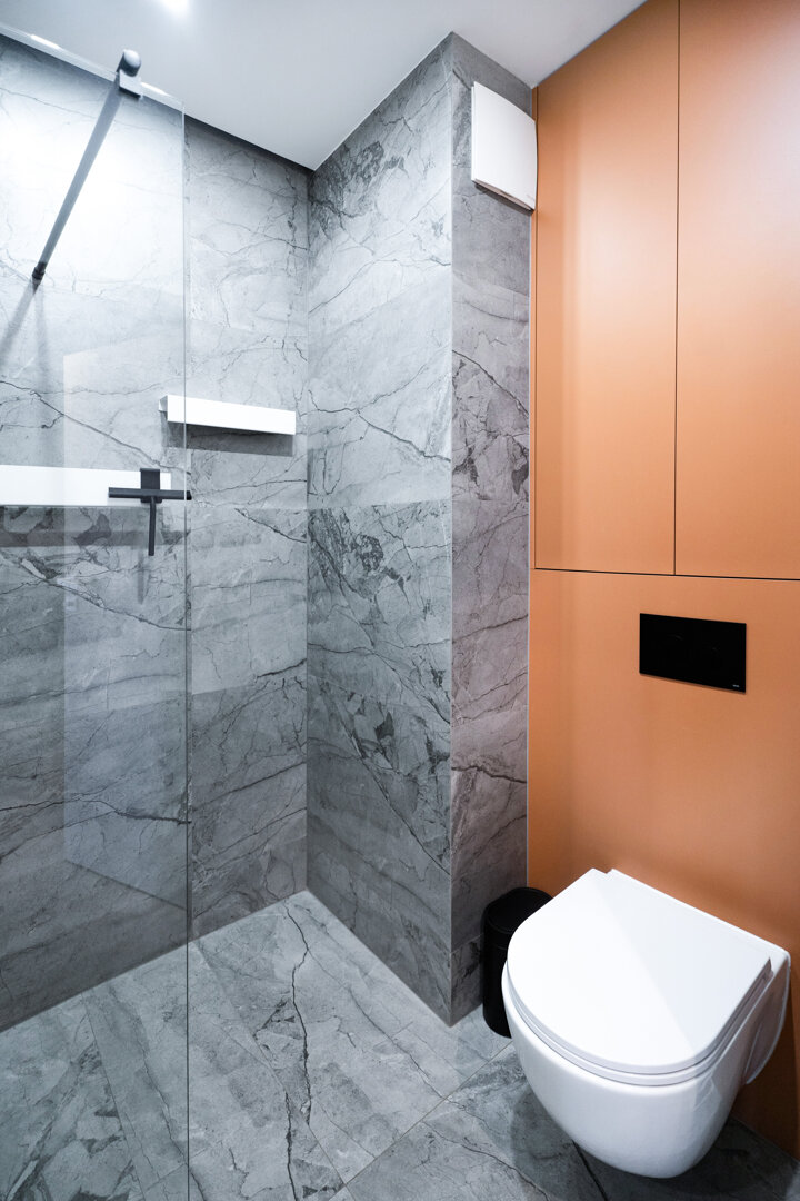 - Nowoczesna łazienka z prysznicem i niezbędnymi udogodnieniami.