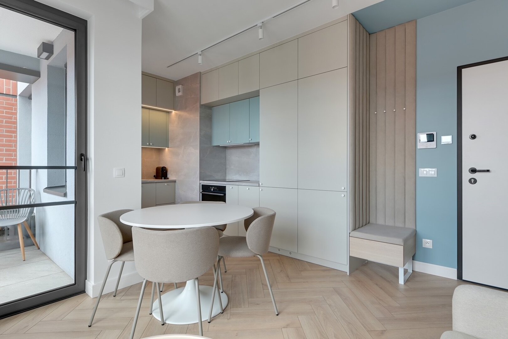 Nowa, stylowa kawalerka z balkonem i klimatyzacją. W apartamencie znajduje się wygodne łóżko oraz rozkładana sofa dla dodatkowych gości. Jasne, nowoczesne wnętrze zapewnia komfortowy pobyt zarówno na krótki, jak i dłuższy wyjazd.