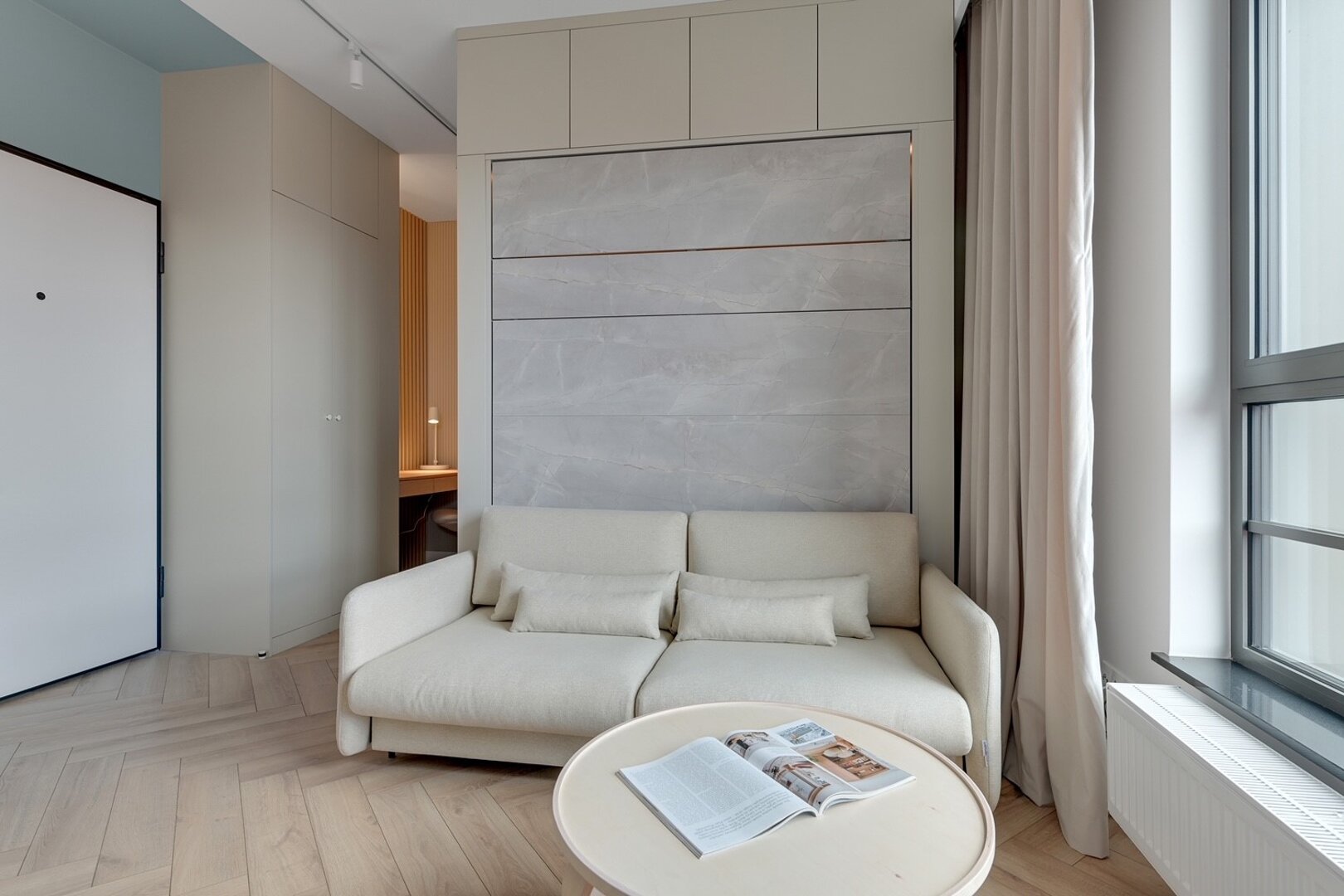Nowa, stylowa kawalerka z balkonem i klimatyzacją. W apartamencie znajduje się wygodne łóżko oraz rozkładana sofa dla dodatkowych gości. Jasne, nowoczesne wnętrze zapewnia komfortowy pobyt zarówno na krótki, jak i dłuższy wyjazd.