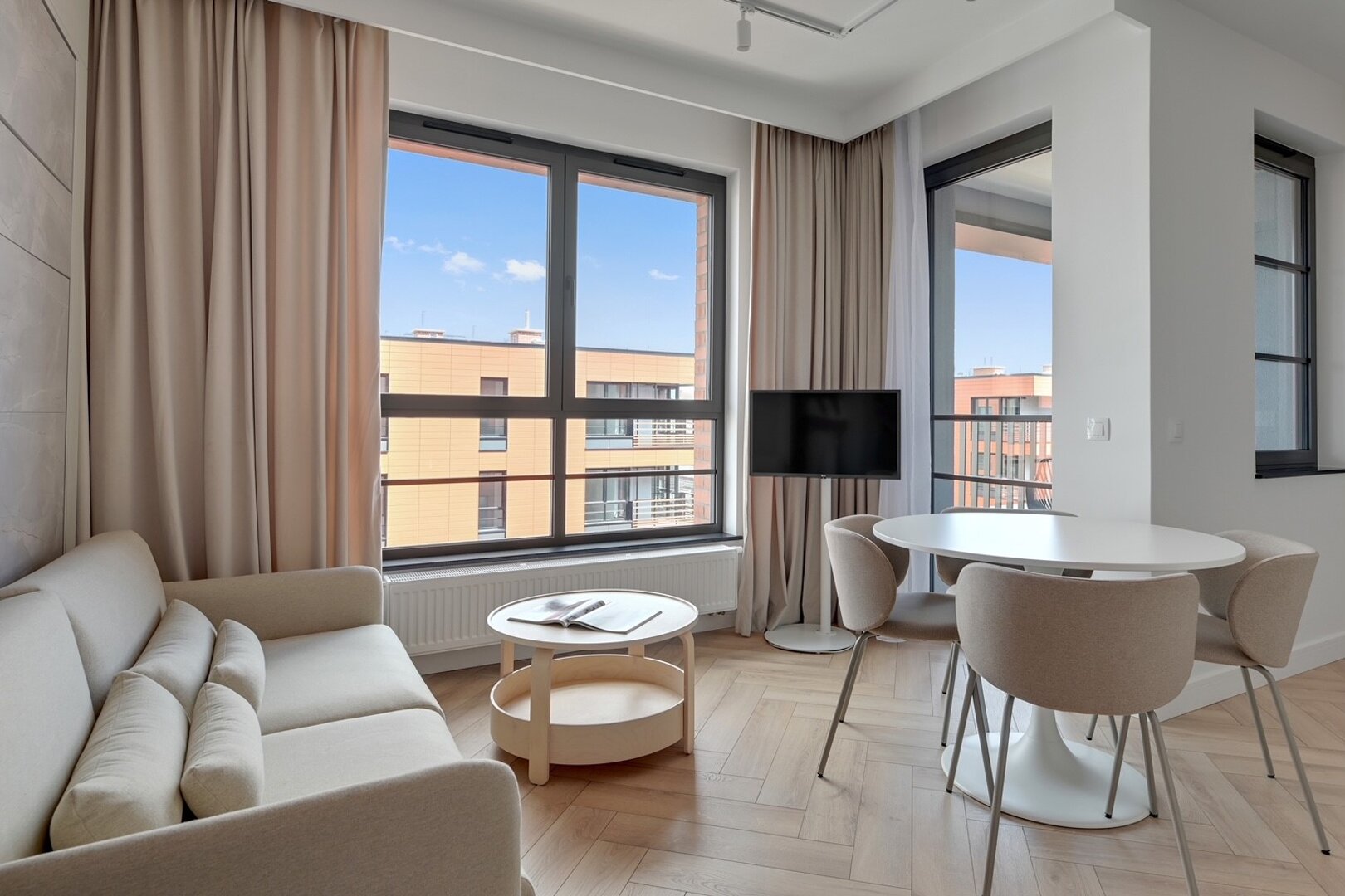 Komfortowy apartament z oddzielną sypialnią i balkonem, położony tuż przy Europejskim Centrum Solidarności. Idealny dla osób ceniących wygodę i świetną lokalizację. Dodatkowym atutem jest ogólnodostępny taras na dachu budynku.