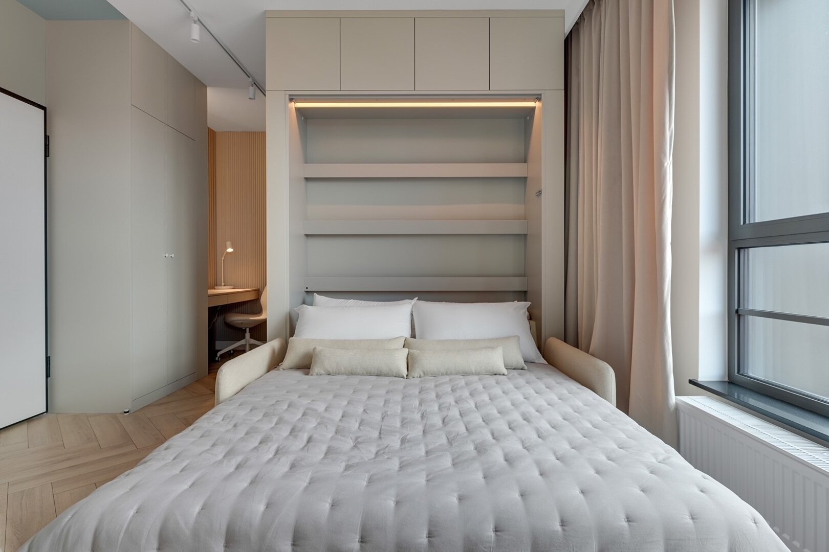 Nowa, stylowa kawalerka z balkonem i klimatyzacją. W apartamencie znajduje się wygodne łóżko oraz rozkładana sofa dla dodatkowych gości. Jasne, nowoczesne wnętrze zapewnia komfortowy pobyt zarówno na krótki, jak i dłuższy wyjazd.